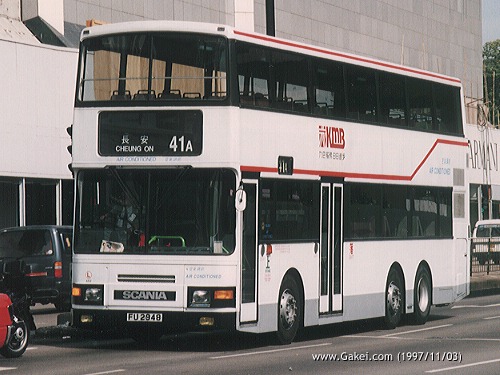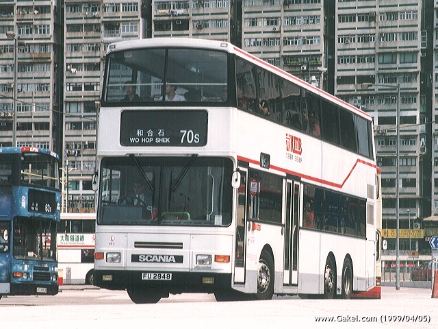 In 1993, Kowloon Motor Bus ("KMB") introduced two 11.5-metre Scania N113DRB demonstrators AS1 (FU 482) and AS2 (FU 2948) with Alexander bodywork. In order to arouse the attention of the public that these two buses were environmental friendly, KMB designed a special livery and organized an inauguration ceremony for them.