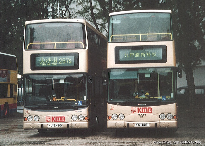 - Left: Kowloon Motor Bus - Volvo Super Olympian 3ASV462 (KU 2490)