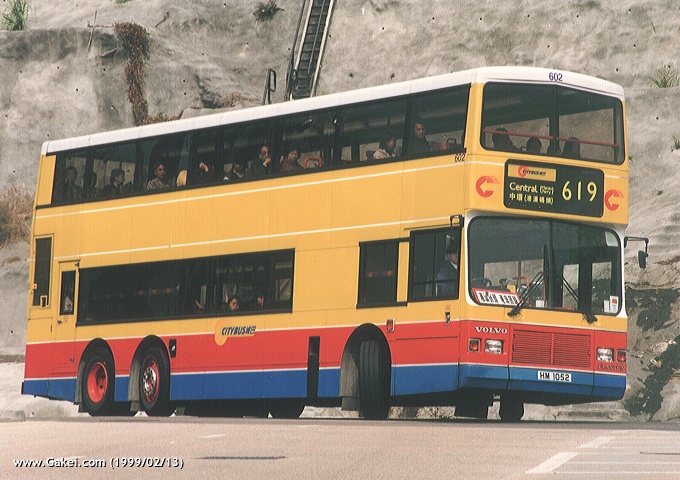 602 (HM 1052) approaching the entrance of Eastern Harbour Crossing, while serving Route 619 towards Central. (1999/02/13) |