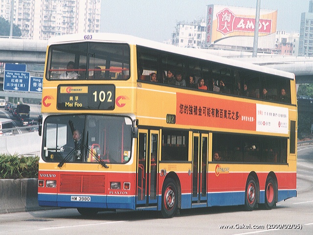 Below: | 603 (HM 3980) was allocated on Route 102 on the first day of Year of the Dragon. (2000/02/05) |