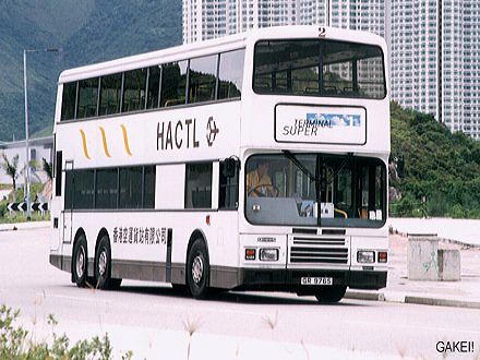 The photo of the HACTL GR9765. The bus is seen on Chek Lap Kok Island with Lantau Island at the back. (1999/06/20) |