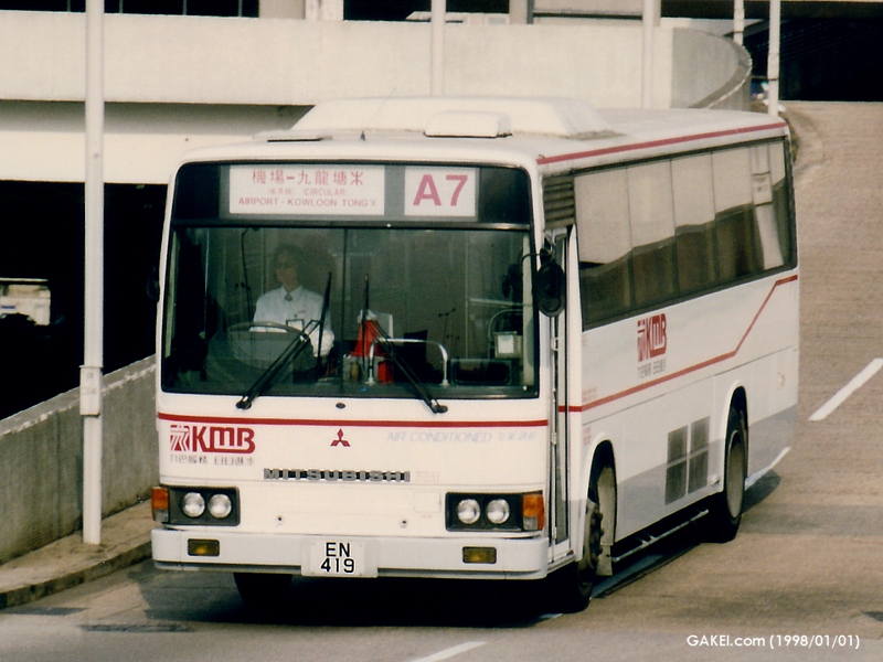 In early 1990 Kowloon Motor Bus ("KMB") started to operate "Point-to-point" franchised bus services that normally provided by non-franchised residential bus service operators previously. The features of this kind of services include more direct routeing and less intermediate stops. As a result, buses with less capacities than double-deckers were needed to run on these routes. In the early days KMB found it difficult to source a suitable model of these "midi-buses". The Company first purchased Toyota Coasters with only 24 seats, and afterwards acquired Hino RKs of both bus and coach versions from Argos on lease basis. In mid-1990, Mitisubishi FUSO MK117J provided the solution. The price of the buses was less expensive than those of European midi-buses and the performance was acceptable. Finally KMB has purchased more than 180 Mitsubishi MKs. Among them there are 3 models, MK117J (AM1-168), MK217J (AM169-183) and MK218J (AM184).