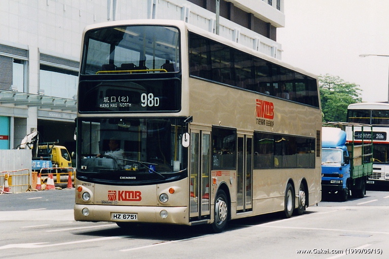 This Trident was repainted gold after delivery to KMB. The bus was then received a registration of HZ 6751 and was allocated a fleet number of ATR101. ATR101 is easily distinguished from other 'Golden Tridents' by the different location of the rear door and aluminium staircase panel.