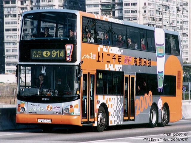 | 2000-04-02 | New World First Bus Dennis / Alexander Trident 1008 / HV 6531 | 2000/01/01 |