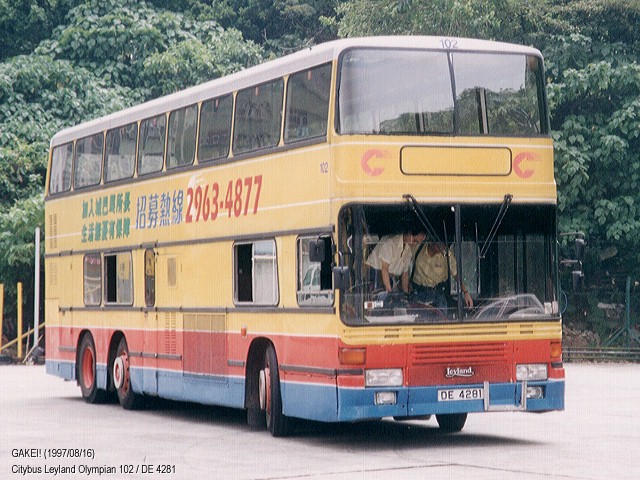 | 2000-09-03 | Citybus Leyland / ECW Olympian 102 / DE 4281 | 1997/08/16 |