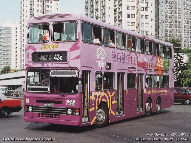 | 2000-10-08 | Kowloon Motor Bus Dennis / Duple Metsec Dragon 3N121 / DJ 9546 | 2000/09/23 |