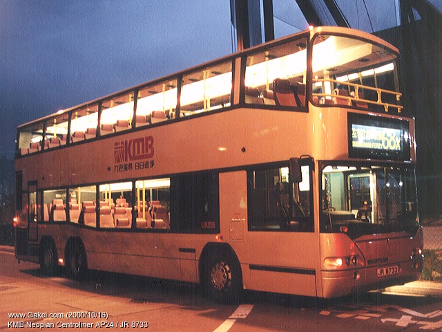 | 2000-10-22 | Kowloon Motor Bus Neoplan Centroliner AP24 / JR 8733 | 2000/10/16 |
