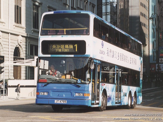 | 2000-12-03 | Kowloon Motor Bus Dennis / Duple Metsec Trident ATR278 / JT 4785 | 2000/11/30 |