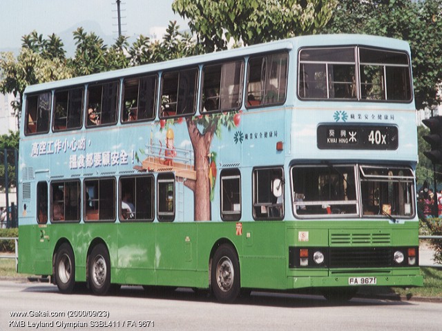 | 2000-12-17 | Kowloon Motor Bus Leyland / Alexander Olympian S3BL411 / FA 9671 | 2000/09/23 |