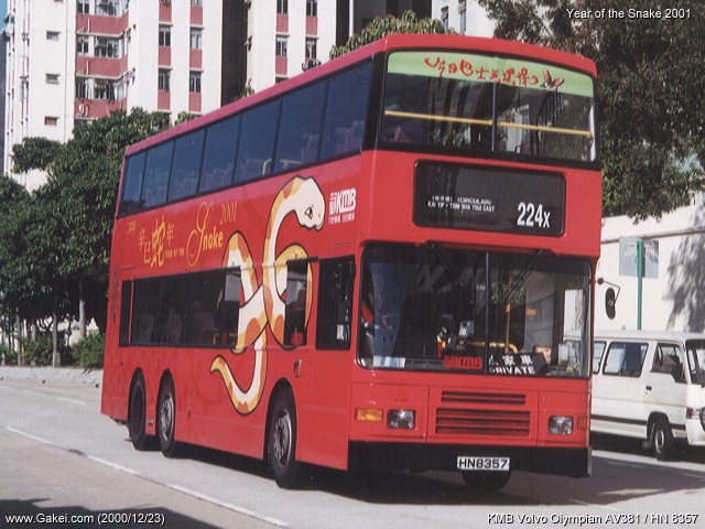| 2000-12-24 | Kowloon Motor Bus Volvo / Alexander Olympian AV381 / HN 8357 | 2000/12/23 |