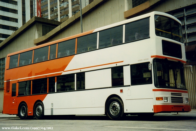 Title photo: An Olympian before registration: Note that the orange stripe on the front beneath the windscreen disappeared after the buses entered into service. (1997/04/26)