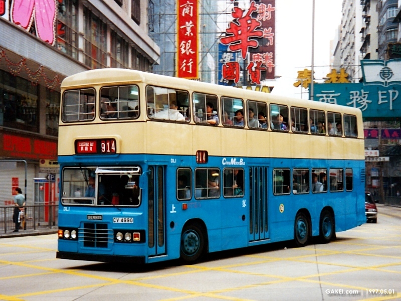 ![]() DL1 (CV 4990) was the first Dennis Condor. The photo was taken at the junction Jordan Road and Nathan Road on the first day service of Rt. 914. (1997/05/01) |