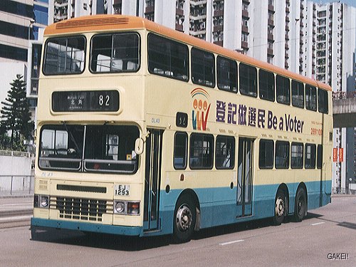 | DL43 (EJ 1293)- DL43 at the same place as the DL42 photo above, but the bus was wearing another all-over advertisement, a government "Be a Voter" advertisement.