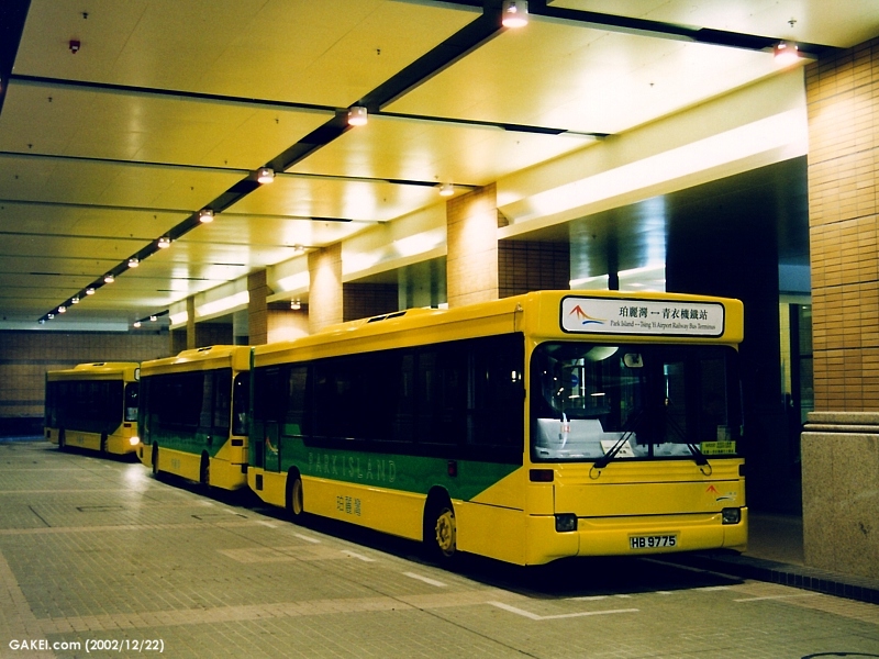 An intermediate stop is provided at the entrance of Park Island. HC 1387is seen leaving the stop heading to MTR Tsing Yi Station. (2002/12/28)
