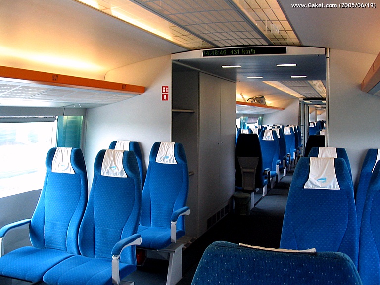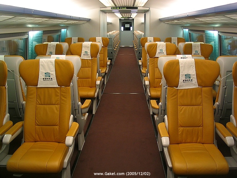 Inside compartment of a maglev train.