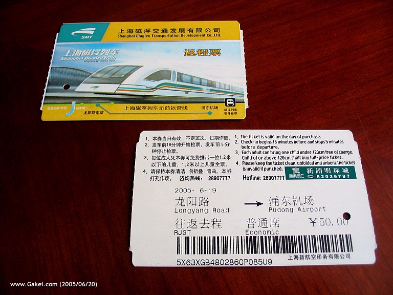 The Shanghai Maglev (magnetic levitation) Demonstration Line is the first commercial maglev line in the World, which connects Shanghai Pudong International Airport with Longyang Road Station. With a maximum speed of 431km/h, it takes only eight minutes to complete the 30km trip.